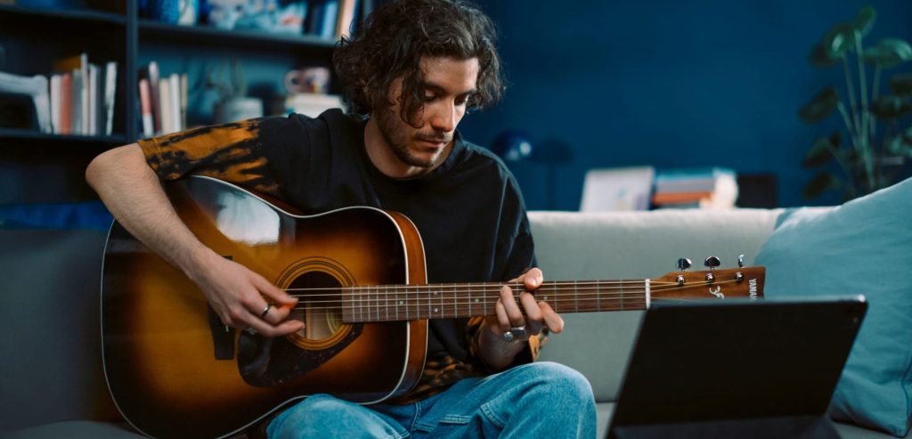 Expanding your chord repertoire with dominant seventh chords like D7 can transform your playing. Yousician’s interactive guitar-learning app has practical exercises and popular songs to help you master new chord shapes and grow as a guitarist.
